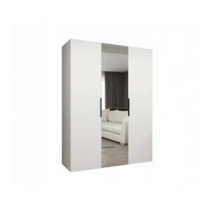 Szafa Lumera Lux 150 łączy minimalistyczny design z funkcjonalnością. Gładkie fronty w kolorze białego matu zostały uzupełnione o jedno duże lustro, które nie tylko dodaje szafie elegancji, ale także sprawia, że pomieszczenie wydaje się jaśniejsze i bardziej przestronne.