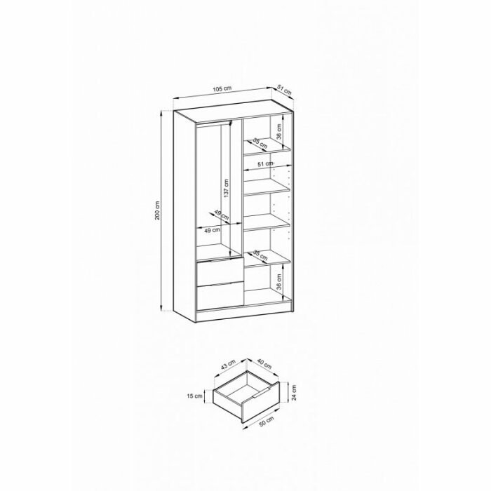 Nowoczesna szafa NELLY wyróżnia się spośród innych produktów swoim ponadczasowym wyglądem oraz ciekawym zestawieniem wnętrza. Została stworzona z myślą o miłośnikach praktycznych i funkcjonalnych rozwiązań z zachowaniem doskonałej jakości. Nelly charakteryzuje się estetyką wykonania z dbałością o każdy szczegół. Świadczą o tym odpowiednio rozmieszczone półki oraz owalny drążek na ubranie wierzchnie. Solidna konstrukcja zwiększy wygodę w trakcie codziennego użytkowania, a funkcjonalne wnętrze sprawi, że ubrania będą zawsze idealnie poukładane i łatwo dostępne.