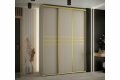 Szafa Savino 10 w szerokości 180 cm to model stworzony dla osób, które oczekują maksymalnej pojemności i nowoczesnego wyglądu. Korpus i fronty w kolorze kaszmir nadają wnętrzu elegancki, ciepły charakter, a trzy fronty z poziomymi wstawkami w kolorze uchwytów i prowadnic (srebrny, złoty lub czarny) podkreślają designerski styl szafy.