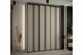 To szafa, która imponuje pojemnością i nowoczesnym stylem. Dekoracyjne pionowe paski w kolorze okuć podkreślają jej wyjątkowy design, a przemyślane wnętrze z 12 półkami i opcjonalnymi szufladami gwarantuje perfekcyjną organizację całej garderoby.