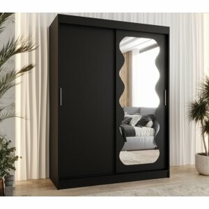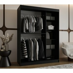 Szafa Sento 150 w kolorze czarny mat to połączenie nowoczesnego stylu i praktyczności. Zapewnia dużo miejsca do przechowywania, a lustrzany front optycznie powiększa i rozjaśnia wnętrze.