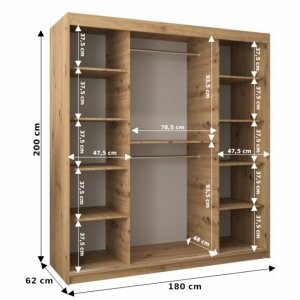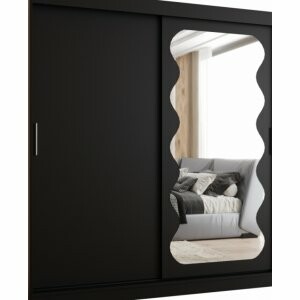 Szafa Sento 180 w kolorze czarny mat to elegancki i pojemny model, idealny do większych wnętrz. Lustro na froncie dodaje lekkości, a nowoczesne wykończenie w matowej czerni nadaje wnętrzu wyjątkowego charakteru.