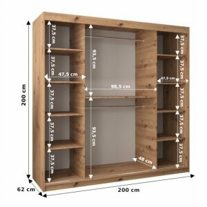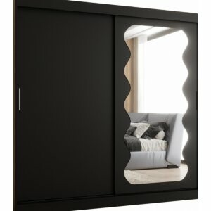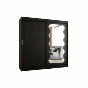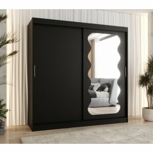 Szafa Sento 200 w wybarwieniu czarny mat to duży i funkcjonalny model, który oferuje dużo miejsca na garderobę. Nowoczesne, matowe wykończenie nadaje jej elegancji, a lustrzany front optycznie powiększa przestrzeń.