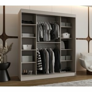Szafa przesuwna Sento 180 kaszmir to przestronny i elegancki mebel, który łączy nowoczesny wygląd z wysoką funkcjonalnością. Dzięki szerokości 180 cm szafa pomieści naprawdę rozbudowaną garderobę – od długich płaszczy i sukienek, przez garnitury, po złożone ubrania codzienne i akcesoria.