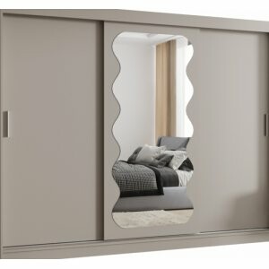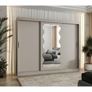 Lustrzany front nie tylko pełni funkcję praktyczną, ale również sprawia, że szafa nabiera nowoczesnego charakteru, a pomieszczenie wydaje się większe i jaśniejsze. Kolor kaszmir podkreśla elegancki design mebla, nadając wnętrzu przytulnego i ponadczasowego charakteru. To propozycja dla osób, które poszukują połączenia luksusowej estetyki z najwyższą funkcjonalnością.