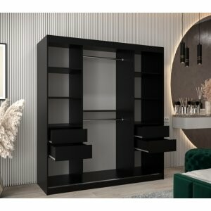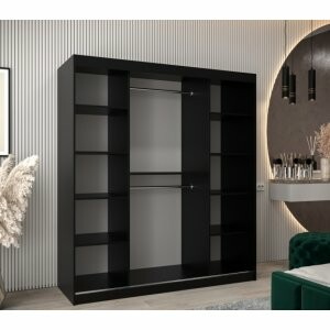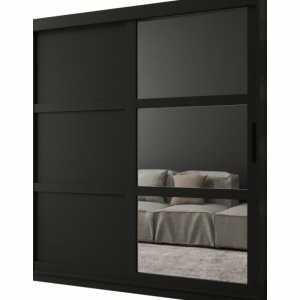 Szafa Spark 180 czarny mat to bardzo pojemny model, który pozwala na wygodne przechowywanie dużej ilości odzieży i dodatków. Szerokie lustro na froncie nadaje wnętrzu wyjątkowy charakter, rozjaśnia je i optycznie powiększa, co sprawia, że szafa świetnie sprawdzi się nawet w mniejszych pomieszczeniach. System drzwi przesuwnych gwarantuje komfort użytkowania i oszczędność miejsca.