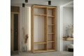 Szafa przesuwna Strado 130 cm w wybarwieniu dąb artisan to idealny kompromis pomiędzy kompaktowym rozmiarem a dużą pojemnością. Ciepły, naturalny odcień drewna nadaje wnętrzu przytulności, a czarne lamele na jednym froncie wprowadzają nowoczesny, loftowy charakter.