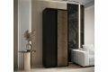 Połączenie czerni w macie i drewnianych lameli sprawia, że szafa jest nowoczesna i elegancka. Samodzielne przykręcenie lameli podczas montażu pozwala na ich idealne wypozycjonowanie i gwarantuje trwałe mocowanie. System drzwi przesuwnych oszczędza miejsce, a opcjonalny samodomykacz sprawia, że użytkowanie jest jeszcze wygodniejsze.