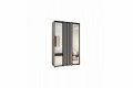 Połączenie białego matu, czarnych lameli i lustra tworzy wyjątkowy efekt wizualny – nowoczesny i elegancki zarazem. Lustra powiększają optycznie pomieszczenie, a czarne uchwyty podkreślają spójność stylistyczną. To doskonały wybór do większych wnętrz, gdzie liczy się zarówno design, jak i funkcjonalność.