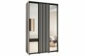 Szafa przesuwna Strado Lux 150 cm to przestronny i elegancki mebel, który świetnie sprawdzi się w większych sypialniach i garderobach. Jej wyjątkowy wygląd opiera się na połączeniu białych, matowych frontów, czarnych lameli na jednym froncie oraz dwóch dużych luster, które optycznie powiększają i rozjaśniają pomieszczenie.