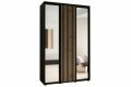 Szafa przesuwna Strado Lux 160 cm to pojemny i elegancki mebel, który doskonale sprawdzi się w większych sypialniach i garderobach. Wyjątkowy wygląd zawdzięcza połączeniu czarnego matu, lameli w kolorze dąb artisan na jednym froncie i dwóch frontów w lustrze, które rozjaśniają wnętrze i optycznie je powiększają.