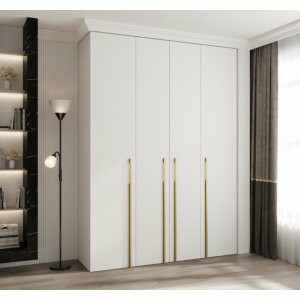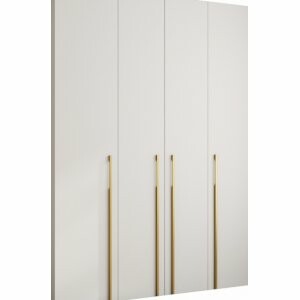 TARO DUO 180 to najszersza czterodrzwiowa szafa w linii DUO, zaprojektowana z myślą o maksymalnej funkcjonalności i elegancji. Matowe fronty w kolorze biały mat wprowadzają do wnętrza nowoczesny, świeży charakter, a smukłe uchwyty w kolorze złotym lub czarnym dodają całości wyrafinowanego stylu. To doskonały wybór do przestronnych sypialni i garderób, gdzie potrzebne jest dużo miejsca do przechowywania.