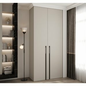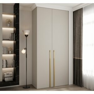 TARO DUO 110 w kolorze kaszmir to funkcjonalna, dwudrzwiowa szafa, która oferuje nieco więcej miejsca do przechowywania niż model 100 cm, zachowując przy tym smukłą i elegancką linię. Matowe fronty w ciepłym odcieniu kaszmir ocieplają wnętrze, a długie, wąskie uchwyty w kolorze złotym lub czarnym dodają nowoczesnego charakteru.