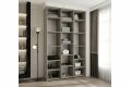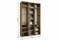 Dzięki szerokim, trzem drzwiom uchylnym na zawiasach z systemem cichego domyku HETTICH, dostęp do całego wnętrza jest wygodny i cichy. W standardowym układzie wnętrza znajdują się 2 wysuwane, metalowe drążki po bokach oraz 12 półek – po 3 w bocznych sekcjach i 6 w centralnym module – które zapewniają ogromną ilość miejsca na odzież, akcesoria i tekstylia.