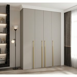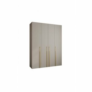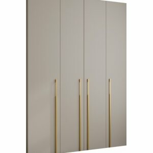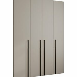 TARO DUO 180 w kolorze kaszmir to najszersza czterodrzwiowa szafa w tej kolekcji, stworzona z myślą o osobach, które oczekują maksymalnej pojemności i eleganckiego wyglądu. Ciepły, matowy odcień kaszmir dodaje wnętrzu przytulności, a smukłe uchwyty w kolorze złotym lub czarnym podkreślają nowoczesną, minimalistyczną linię mebla.