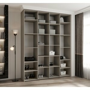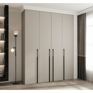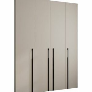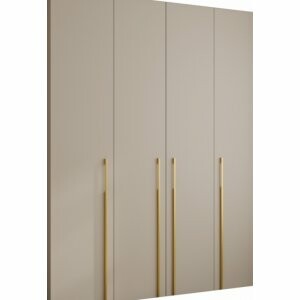TARO DUO 190 w kolorze kaszmir to czterodrzwiowa szafa o imponującej pojemności, zaprojektowana dla osób, które potrzebują perfekcyjnej organizacji garderoby. Ciepły, matowy odcień kaszmir wprowadza do wnętrza przytulny klimat, a smukłe uchwyty w kolorze złotym lub czarnym dodają nowoczesnej elegancji i podkreślają wyrafinowany charakter mebla.