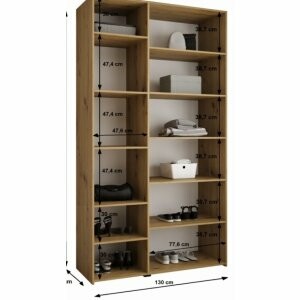 TARO 130 kaszmir to doskonały wybór dla osób, które potrzebują nieco więcej miejsca niż w modelu 120 cm, ale nadal zależy im na eleganckim, kompaktowym meblu. Dzięki drążkowi i 9 półkom utrzymanie porządku jest proste, a możliwość rozbudowy o dodatkowe półki i szuflady pozwala na pełną personalizację wnętrza.