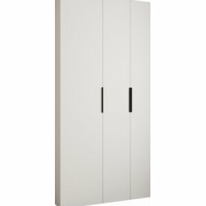 Trzy drzwi uchylne na zawiasach z systemem cichego domyku HETTICH zapewniają komfortowe, ciche użytkowanie i wygodny dostęp do całego wnętrza. W standardowym wyposażeniu znajduje się wysuwany, metalowy drążek na ubrania wiszące oraz 9 półek skręconych na stałe, które pozwalają w uporządkowany sposób przechowywać odzież, akcesoria i tekstylia.
