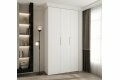 Dzięki trzem drzwiom uchylnym na zawiasach z systemem cichego domyku HETTICH dostęp do wnętrza jest cichy i komfortowy. Standardowy układ wyposażenia obejmuje wysuwany, metalowy drążek na odzież wiszącą oraz 9 półek skręconych na stałe, co pozwala na wygodne rozdzielenie garderoby, akcesoriów i dodatków w przemyślany sposób.
