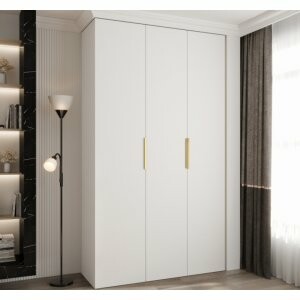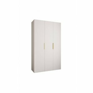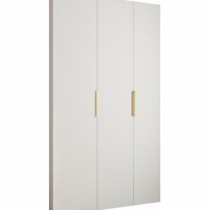 TARO LITE 140 w kolorze biały mat to przestronna, trzydrzwiowa szafa, która dzięki większej szerokości oferuje jeszcze więcej miejsca na ubrania, akcesoria i dodatki. Jej gładkie, matowe fronty oraz trzy smukłe uchwyty w kolorze złotym lub czarnym tworzą elegancki, nowoczesny wygląd, który doskonale komponuje się z minimalistycznymi aranżacjami.