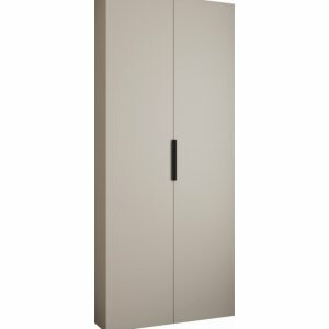 TARO LITE 110 w kolorze kaszmir to dwudrzwiowa szafa o nieco większej szerokości, która oferuje więcej miejsca na ubrania i akcesoria, zachowując elegancki, nowoczesny wygląd. Matowe fronty w ciepłym odcieniu kaszmir nadają wnętrzu przytulności, a dwa smukłe uchwyty w kolorze złotym lub czarnym subtelnie podkreślają minimalistyczny design mebla.