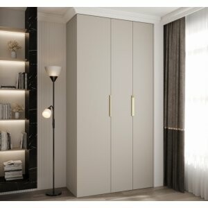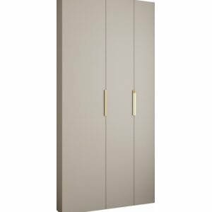 TARO LITE 120 w kolorze kaszmir to pojemna, trzydrzwiowa szafa, która zapewnia doskonałą organizację garderoby przy zachowaniu lekkiej, eleganckiej formy. Ciepły, matowy odcień kaszmir dodaje wnętrzu przytulności, a trzy smukłe uchwyty w kolorze złotym lub czarnym tworzą nowoczesny, spójny akcent wizualny.
