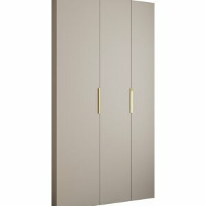 TARO LITE 130 w kolorze kaszmir to trzydrzwiowa szafa o zwiększonej szerokości, która zapewnia jeszcze więcej miejsca do przechowywania przy zachowaniu lekkiego, nowoczesnego designu. Ciepły, matowy odcień kaszmir wprowadza do wnętrza elegancję i przytulność, a trzy smukłe uchwyty w kolorze złotym lub czarnym subtelnie podkreślają nowoczesny styl mebla.