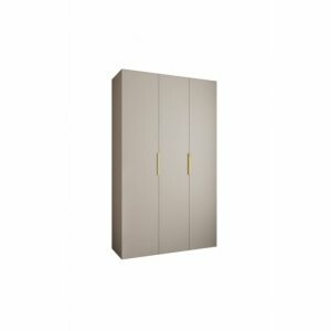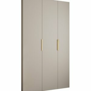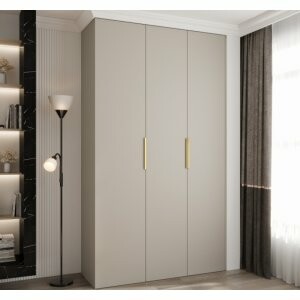 TARO LITE 140 w kolorze kaszmir to trzydrzwiowa szafa o dużej pojemności, idealna do sypialni i garderób, w których liczy się zarówno funkcjonalność, jak i elegancki wygląd. Matowe fronty w ciepłym odcieniu kaszmir nadają wnętrzu przytulności, a trzy smukłe uchwyty w kolorze złotym lub czarnym dopełniają całość, tworząc spójną i nowoczesną formę.
