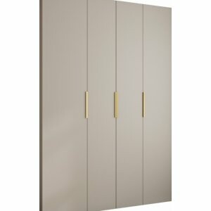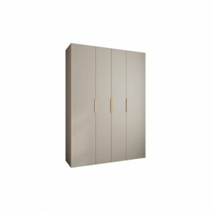 TARO LITE 180 w kolorze kaszmir to najszersza czterodrzwiowa szafa w tej linii, stworzona z myślą o osobach, które oczekują maksymalnej ilości miejsca do przechowywania w połączeniu z eleganckim wyglądem. Matowe fronty w ciepłym, neutralnym odcieniu kaszmir wprowadzają przytulność i harmonię do wnętrza, a cztery smukłe uchwyty w kolorze złotym lub czarnym podkreślają nowoczesny styl mebla.