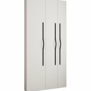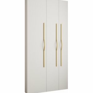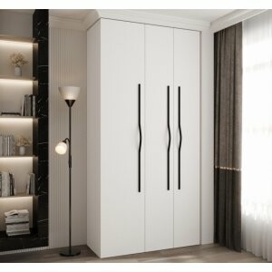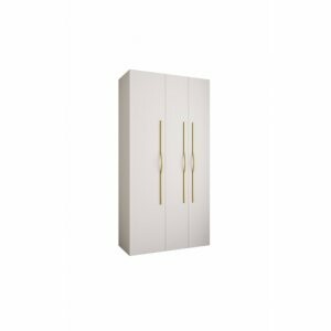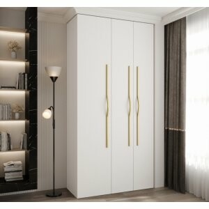 TARO LUX 120 to propozycja dla osób, które potrzebują więcej przestrzeni do przechowywania i jednocześnie chcą wprowadzić do wnętrza element elegancji. Matowe, białe fronty prezentują się niezwykle lekko i nowocześnie, a wysokie uchwyty w kolorze złotym lub czarnym nadają całości wysublimowany, designerski wygląd. Trzy uchylne drzwi zapewniają wygodny dostęp do całego wnętrza, co czyni tę szafę doskonałym wyborem do sypialni, garderoby lub nowoczesnego przedpokoju.