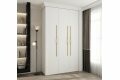 TARO LUX 140 to elegancka i wyjątkowo pojemna szafa, która sprawdzi się zarówno w sypialni, jak i w garderobie czy przestronnym przedpokoju. Matowe, białe fronty nadają wnętrzu nowoczesnego, lekkiego charakteru, a smukłe uchwyty w kolorze złotym lub czarnym dodają subtelnej elegancji. Trzy szerokie drzwi uchylne zapewniają wygodny dostęp do wnętrza, co ułatwia utrzymanie porządku i organizację wszystkich ubrań oraz dodatków.