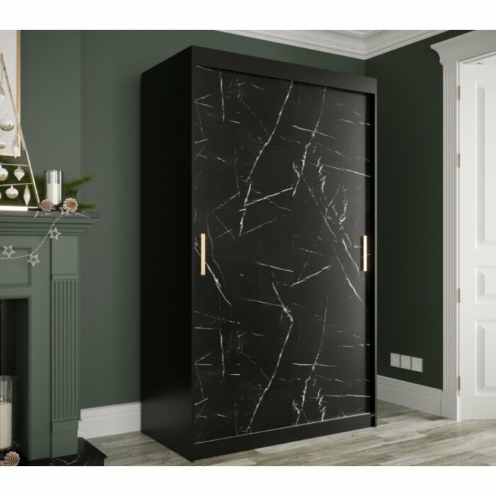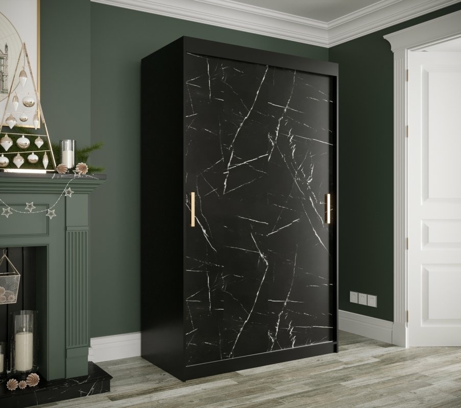 Szafa przesuwna Travero 120 – czarny mat + fronty marmurowe czarne