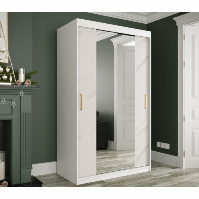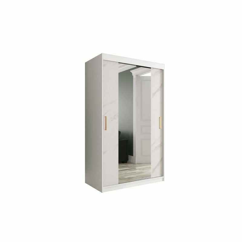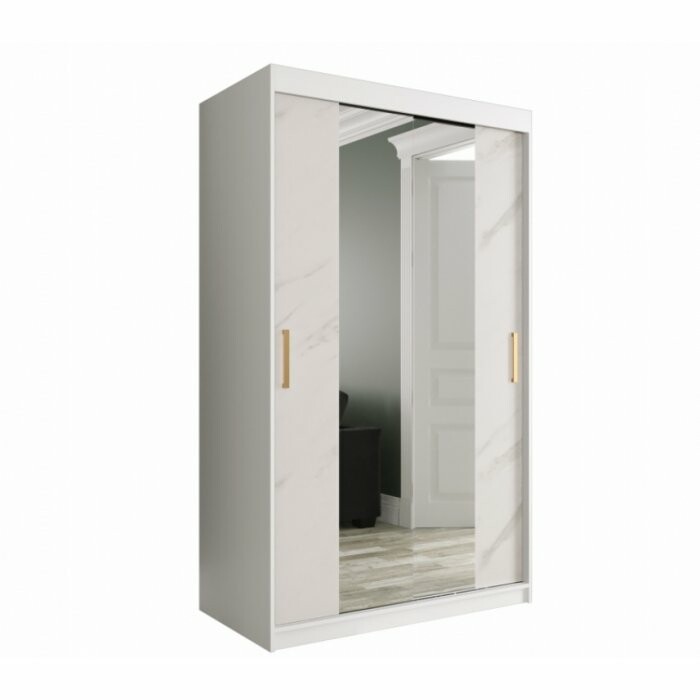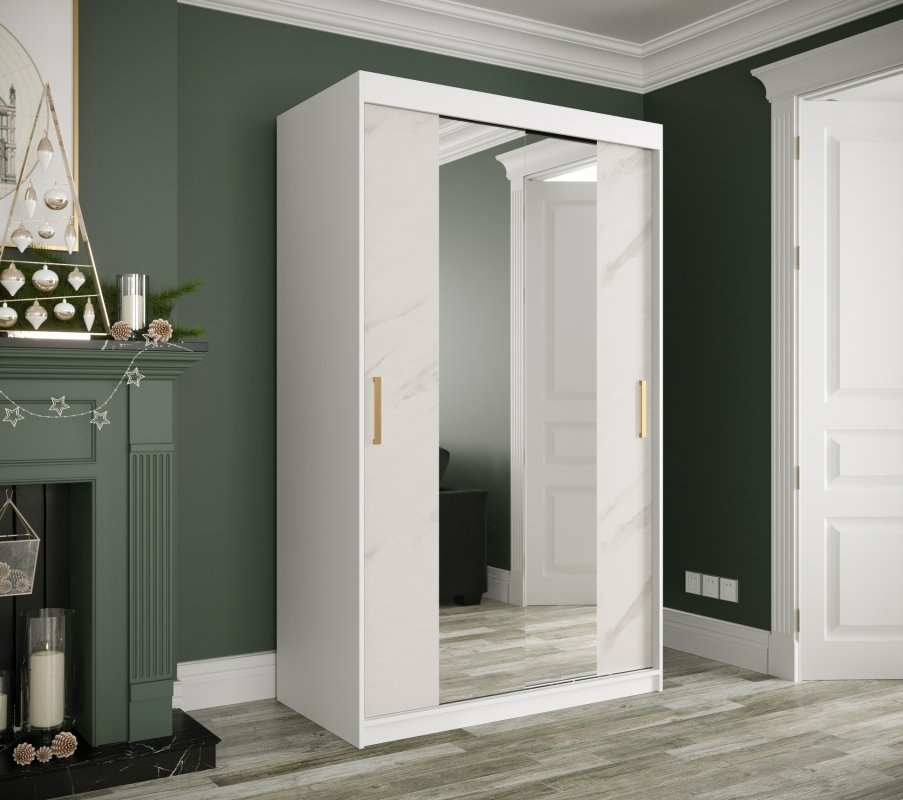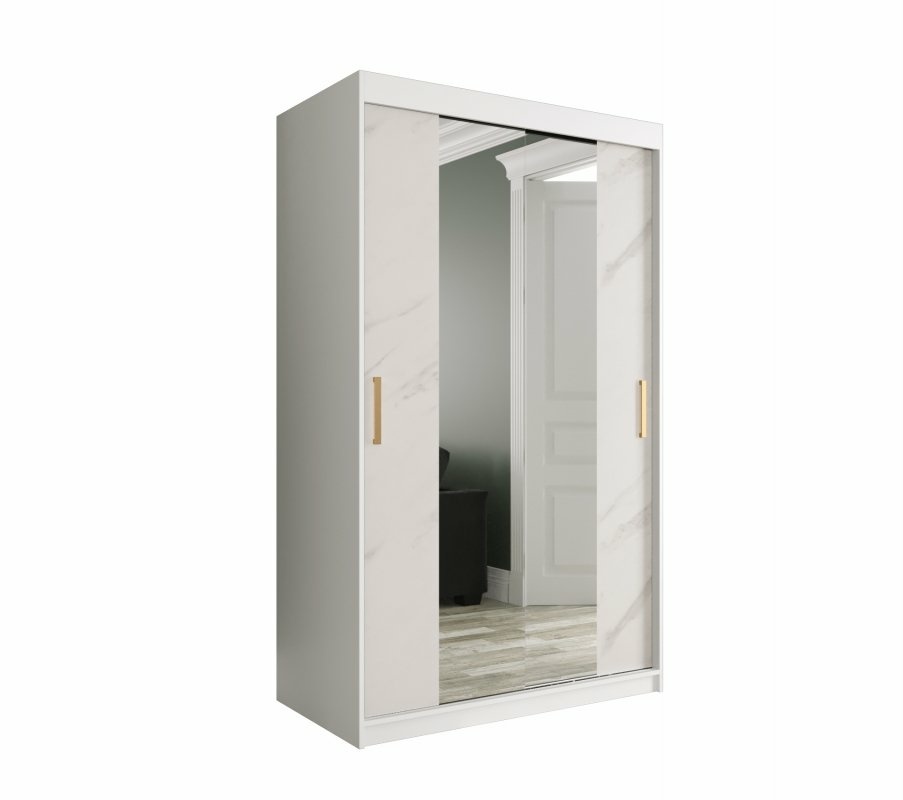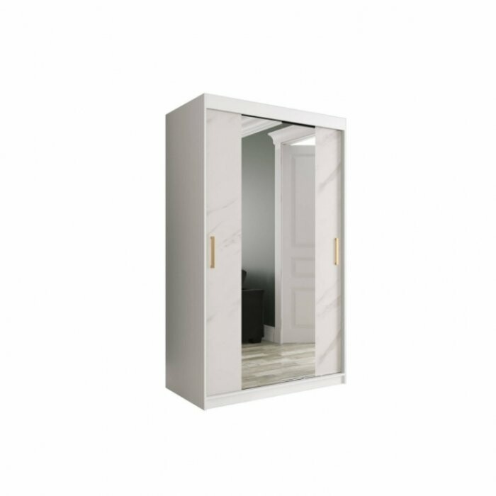 Szafa przesuwna Travero Lux 120 – biały mat + fronty marmurowe z lustrem pośrodku