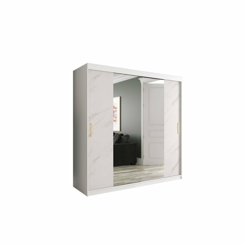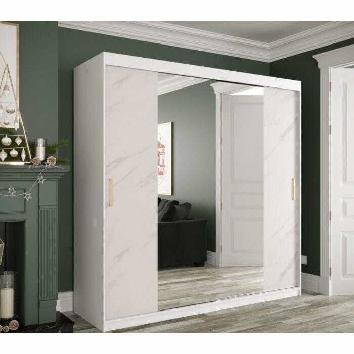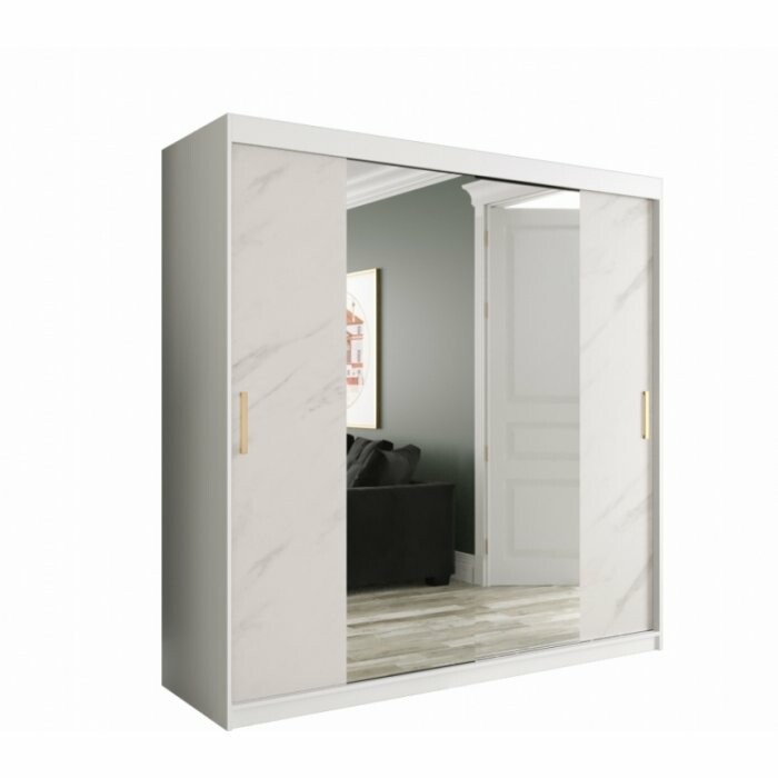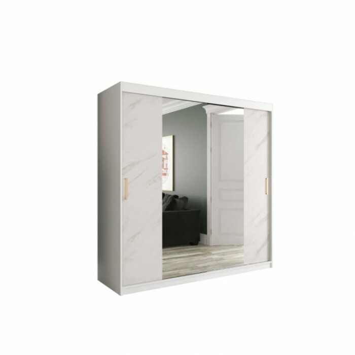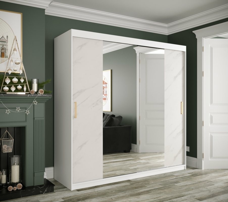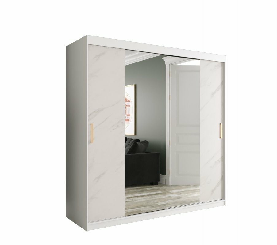 Szafa przesuwna Travero Lux 200 – biały mat + fronty marmurowe z lustrem pośrodku