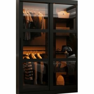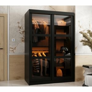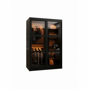 Szafa Viton 120 czarny mat to połączenie funkcjonalności i nowoczesnego designu. Kompaktowe wymiary sprawiają, że świetnie pasuje nawet do mniejszych sypialni czy garderób, a możliwość doposażenia w szuflady i oświetlenie LED pozwala w pełni wykorzystać jej potencjał.