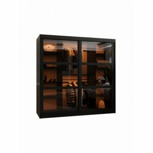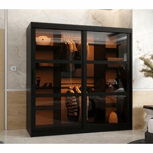 Szafa Viton 180 czarny mat to przestronny, elegancki mebel, który doskonale sprawdzi się w większych sypialniach i garderobach. Dzięki możliwości wyboru 2 lub 4 szuflad oraz dodatkowych akcesoriów, wnętrze szafy można w pełni dostosować do własnych potrzeb i zachować porządek na dłużej.