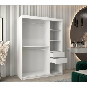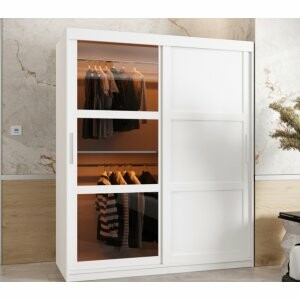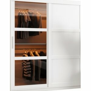 Szafa Viton Solid 150 to pojemny i elegancki mebel, który doskonale sprawdzi się w sypialni lub garderobie. Dzięki przesuwnym drzwiom i przemyślanemu układowi wnętrza pozwala zachować porządek, a połączenie płyty i szkła dodaje nowoczesnego charakteru.